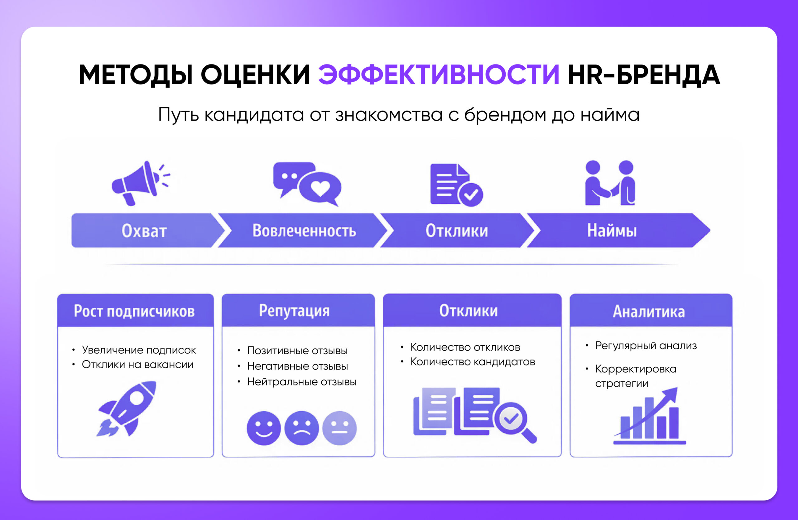 На разных этапах кампании показатели меняются. В начале обычно растет узнаваемость и вовлеченность, позже — интерес к вакансиям и качеству откликов. Если репутация выстроена правильно, со временем снижается стоимость привлечения кандидата и увеличивается доверие к работодателю в целом.