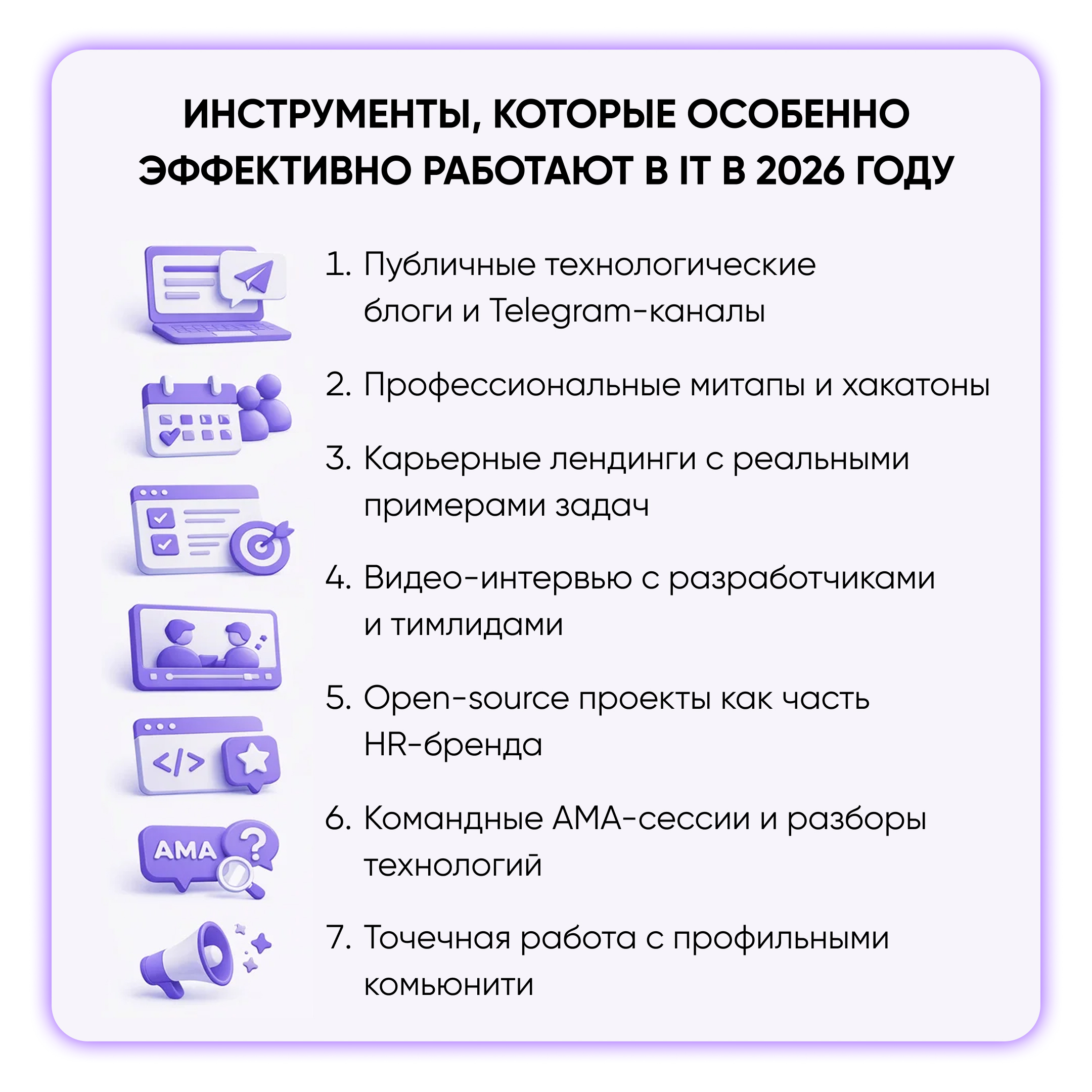 ИТ-специалисты ценят обмен знаниями, поэтому офлайн и онлайн-события остаются сильными инструментами.