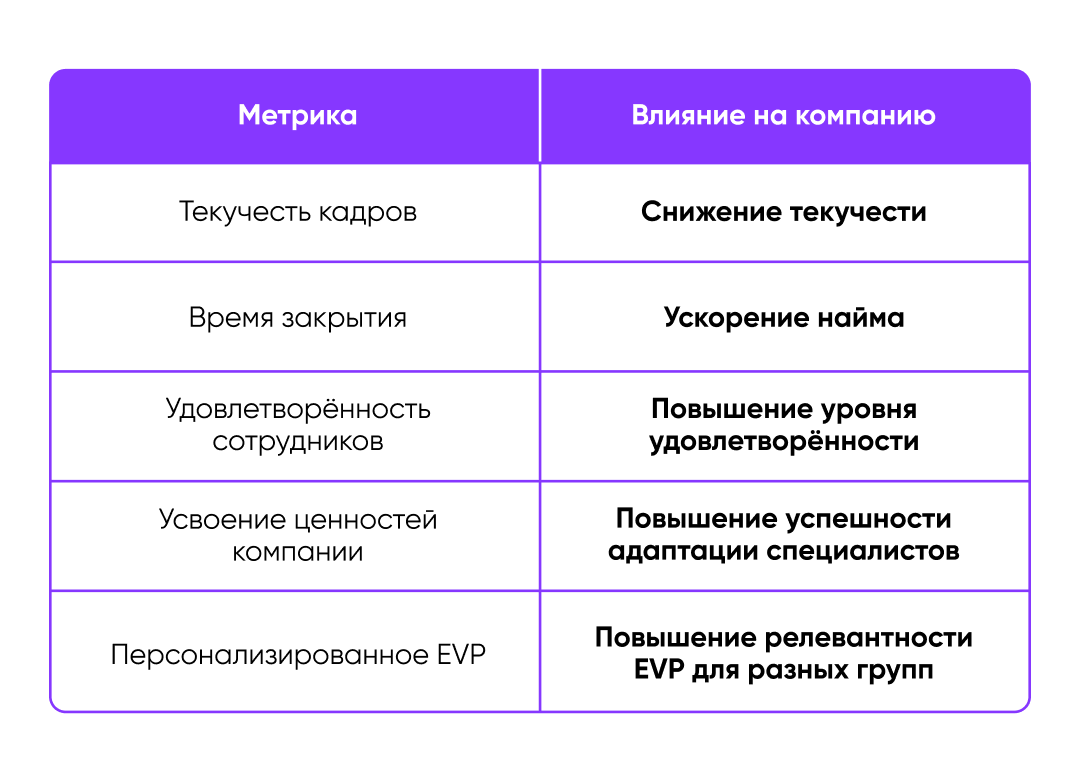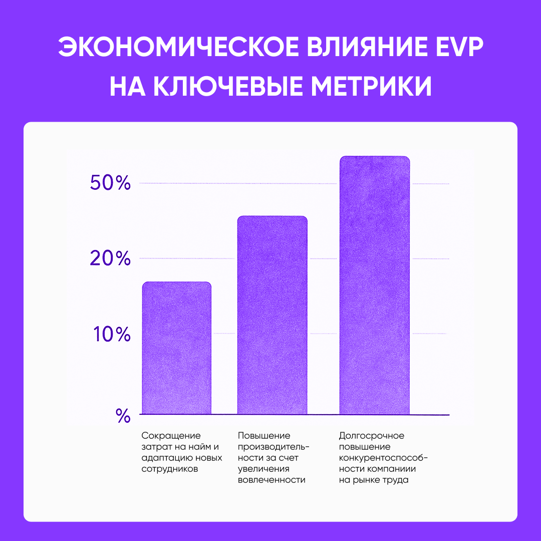 - Улучшение качества найма: ценностное предложение помогает привлекать соискателей, которые соответствуют ценностям компании, сокращая расходы и время на рекрутинг.