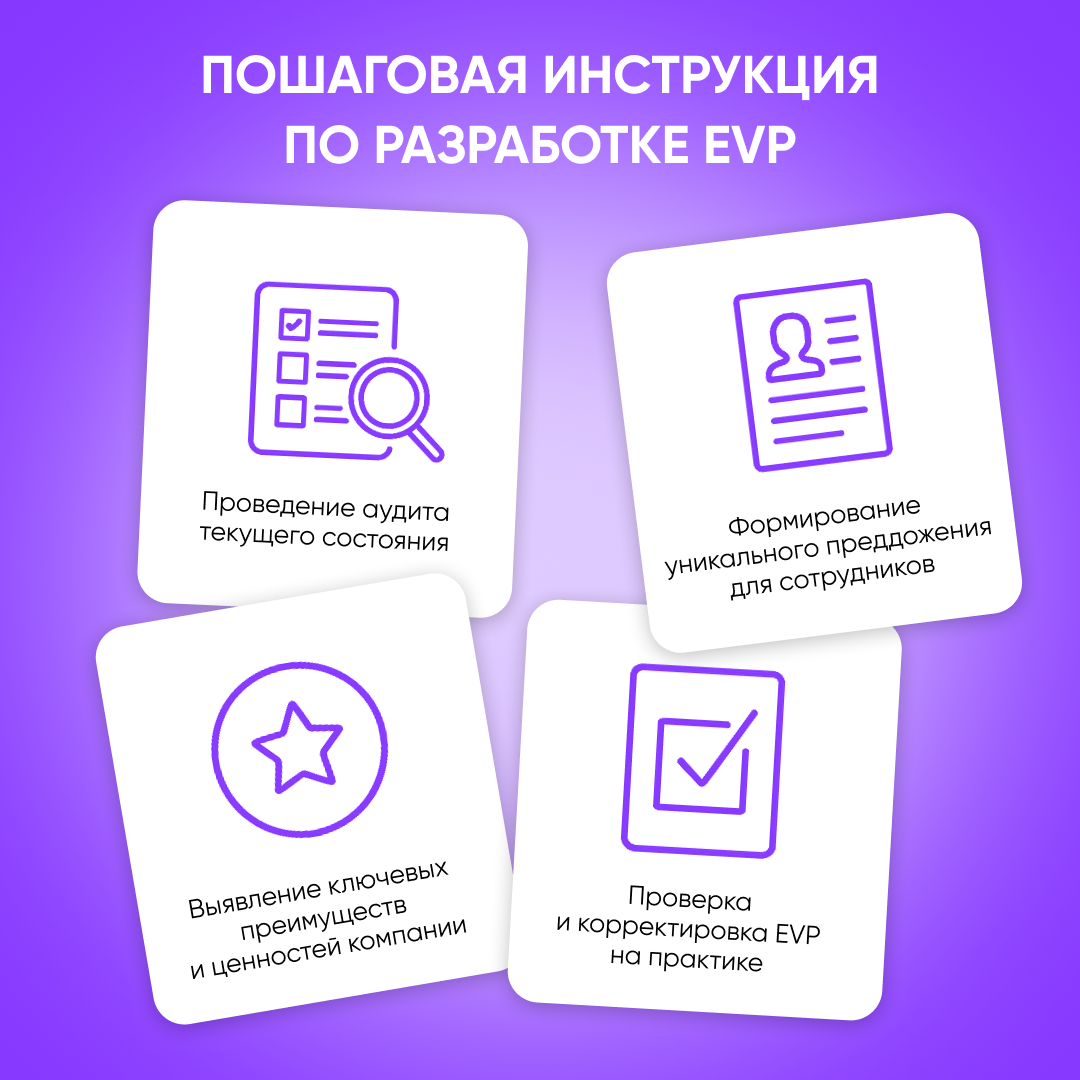 Employee Value Proposition (EVP), или ценностное предложение работодателя, – это набор уникальных преимуществ, которые компания предлагает своим специалистам взамен на их компетенции, навыки и вклад. Ценностное предложение работодателя выступает как обещание руководства работникам и соискателям относительно условий работы, возможностей для развития и корпоративной культуры.