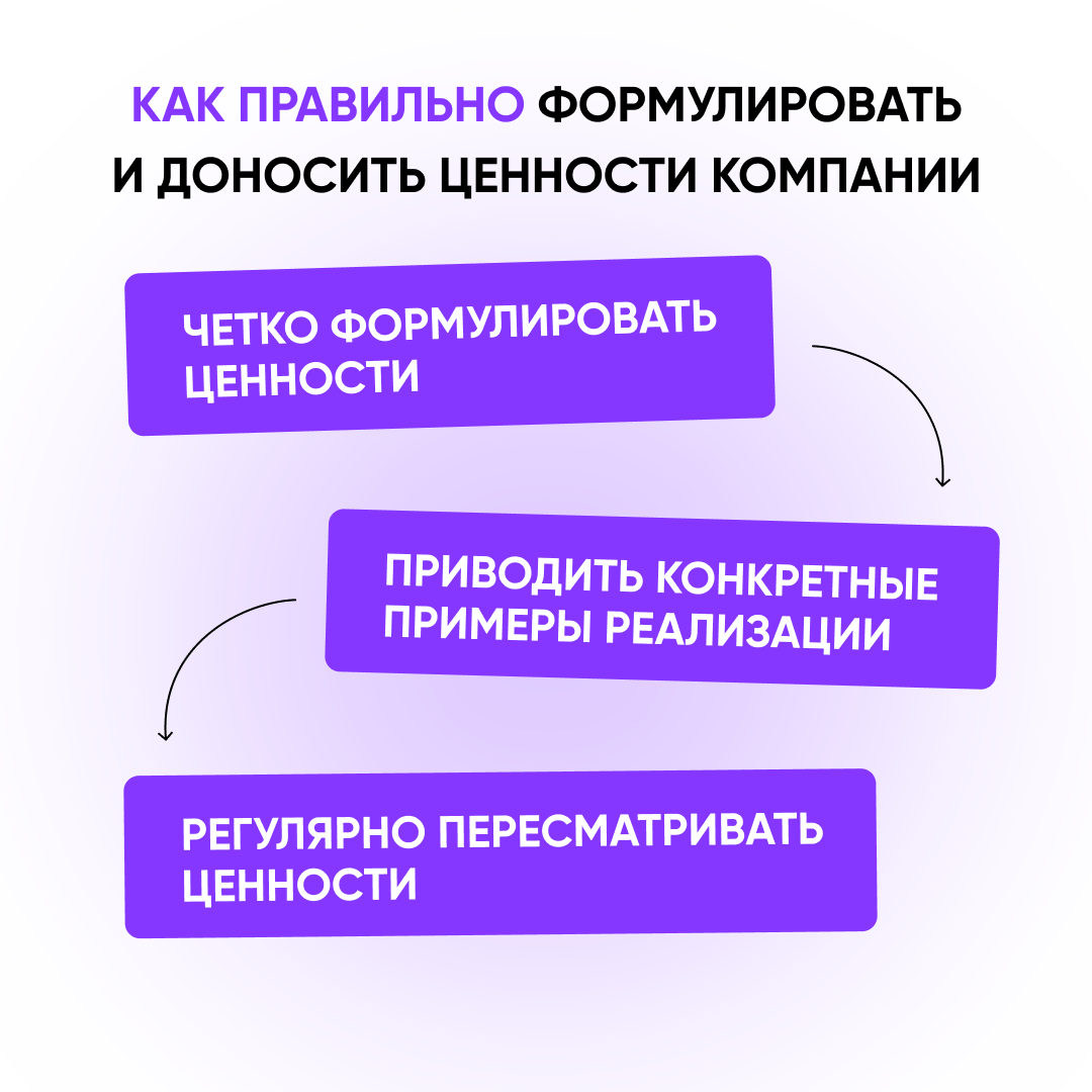 - Регулярно пересматривать ценности, вовлекая сотрудников в обсуждение и корректировку.