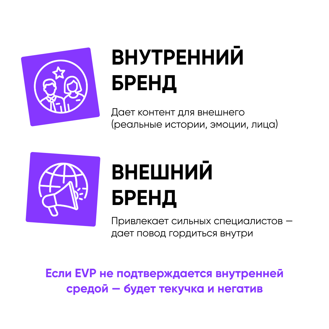 Важно: EVP должно быть не только уникальным, но и правдивым. Если вы пишете «мы гибкие и поддерживаем инициативу», — будьте готовы это подтвердить.