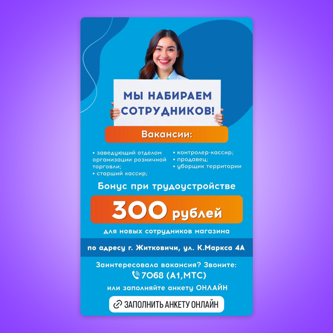 Закрыть вакансии в торговые залы (кассиры, продавцы) по всей стране.